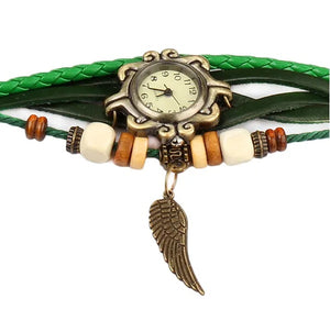Beautiful Bohemian Style Retro Handmade Leather Angel Wing Women's Watches
