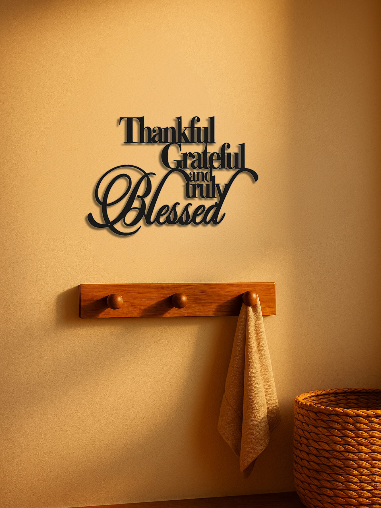 Elegant Thankful Grateful Blessed Metal Art -Wall Decor For Home Office Bedroom
