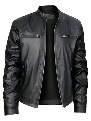 Men's Stand-up Collar Leather Jacket Business Casual Jacket