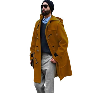 Retro Horn Button Hooded Woolen Trench Coat Men